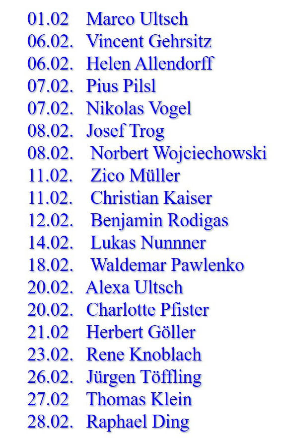 Unsere besonderen Glückwünsche gehen am 8.2. an